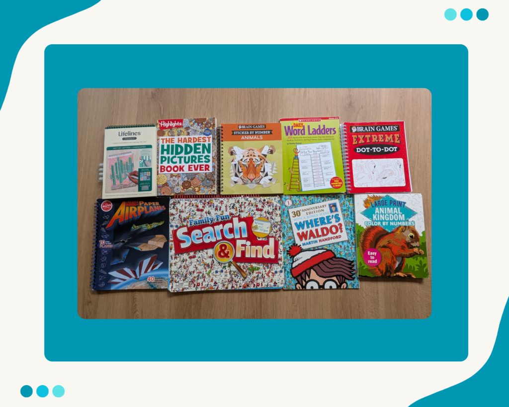 5. Hidden Pictures Book: Dollar Tree also carries easier versions for younger kids to do. Last Christmas, my younger son received this one, and I think he enjoyed the challenge of combating the “hardest picture book ever.”