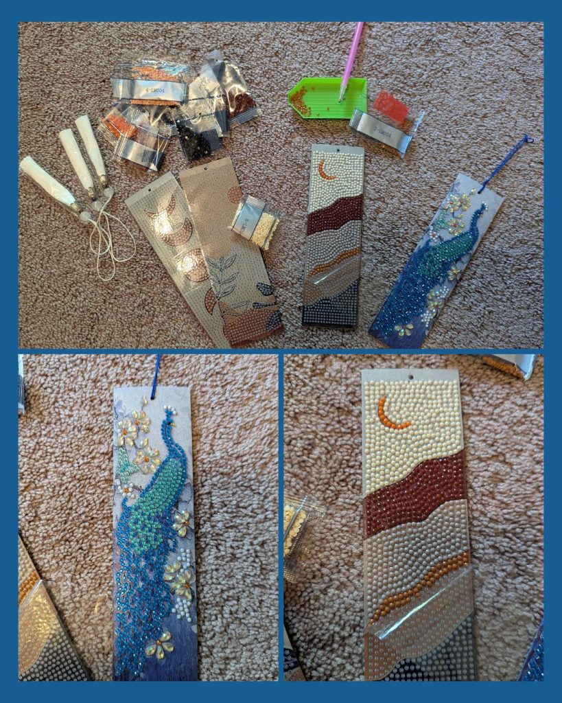 Here’s the peacock bookmark and boho set pictured below. This bookshelf set and floral set are next on my list.