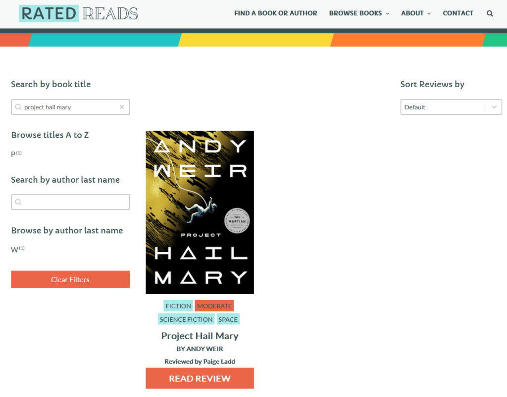 Rated Reads fills a unique (and often overlooked) gap in the reading world.